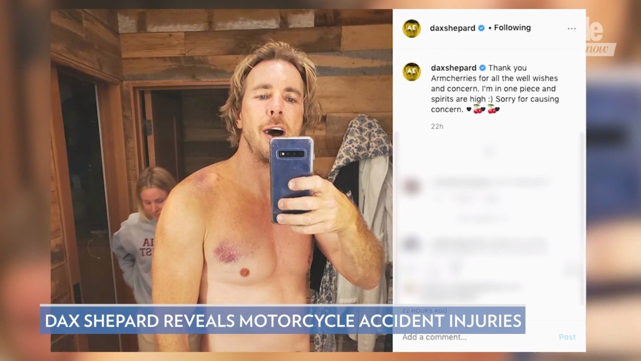 Dax shepard is recovering after suffering multiple broken bones in a motorcycle crash. Dax shepard suffered from multiple broken bones after he collided with other vehicles during a recent motorcycle ride on a race track and will need to undergo surgery. Dax shepard announced on this monday s episode of his armchair expert podcast that he was recently injured in a motorcycle crash. Actor dax shepard is in bad shape after a motorcycle crash at sonoma raceway.