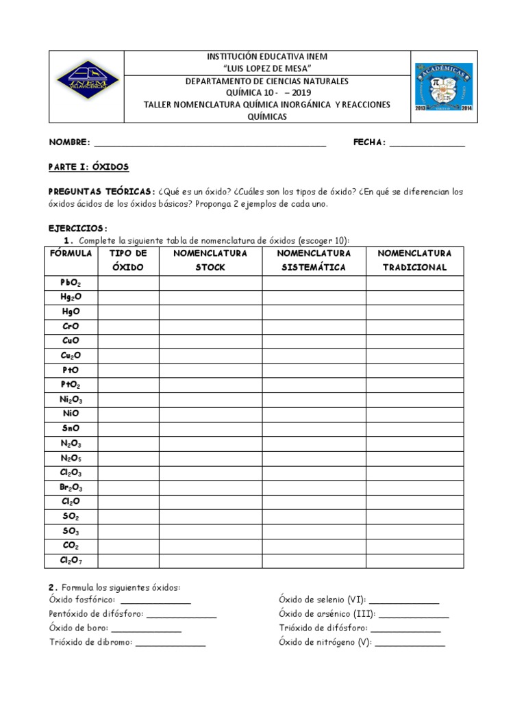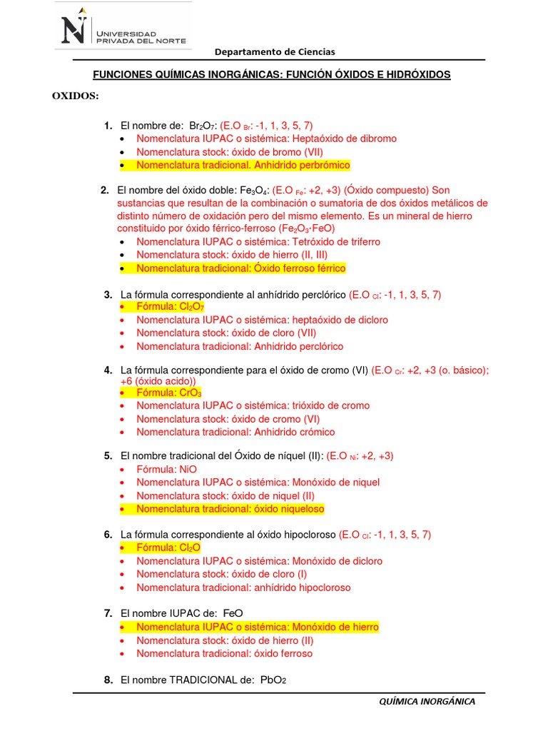 Ejercicios de formulación y nomenclatura de química inorgánica de los compuestos binarios y ternarios según stock sistemática y tradicional. Tradicional también conocida como nomenclatura clásica se emplea indicando la valencia del elemento a través de prefijos y sufijos que acompañan al nombre del elemento cuando el elemento a tratar sólo posee una valencia se utiliza el prefijo ico pero cuando tiene dos valencia se utilizan los prefijos oso para la valencia menor e ico para la mayor. Mn2o3 óxido manganoso óxido de manganeso iii trióxido de dimanganeso. óxido niqueloso tipo de compuesto.